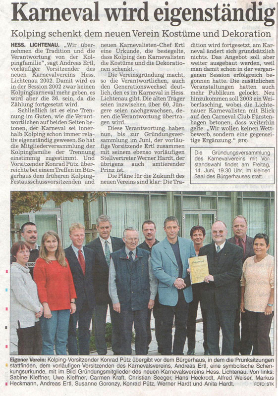 Dies war die Geburtsstunde des Karnevalsverein Hessisch Lichtenau 2002 e.V.